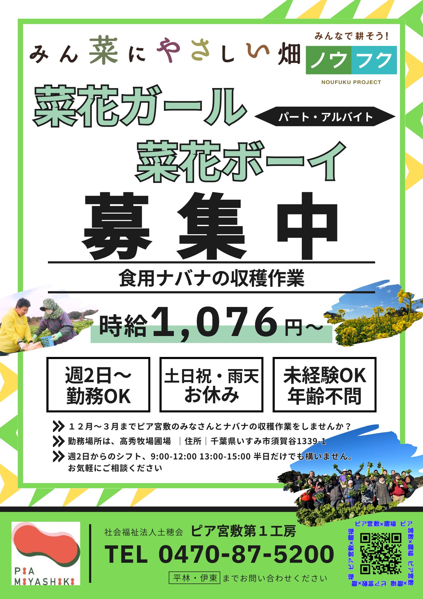 #ピア宮敷第1工房 #菜花 #農福連携 #高秀牧場 #菜花ガール募集 #求人情報 #千葉県いすみ市