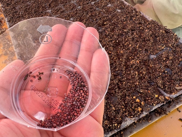 菜花の播種も佳境を迎えていますが、間に合うのかなぁと頭を抱えていた所、