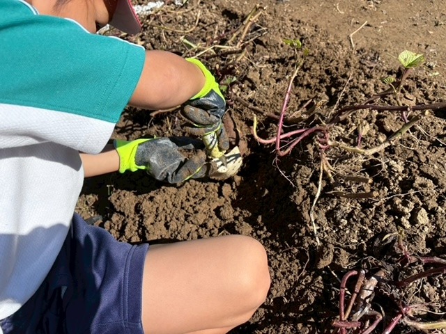 小学生の皆さんと一緒にサツマイモ掘り。