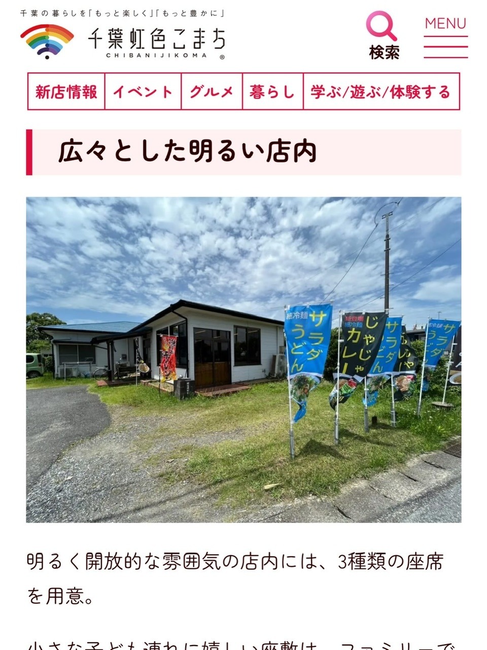 WEBメディア「虹色こまち」さんに“うどん屋どんちゃん”が掲載されました。素敵にご紹介していただきました。